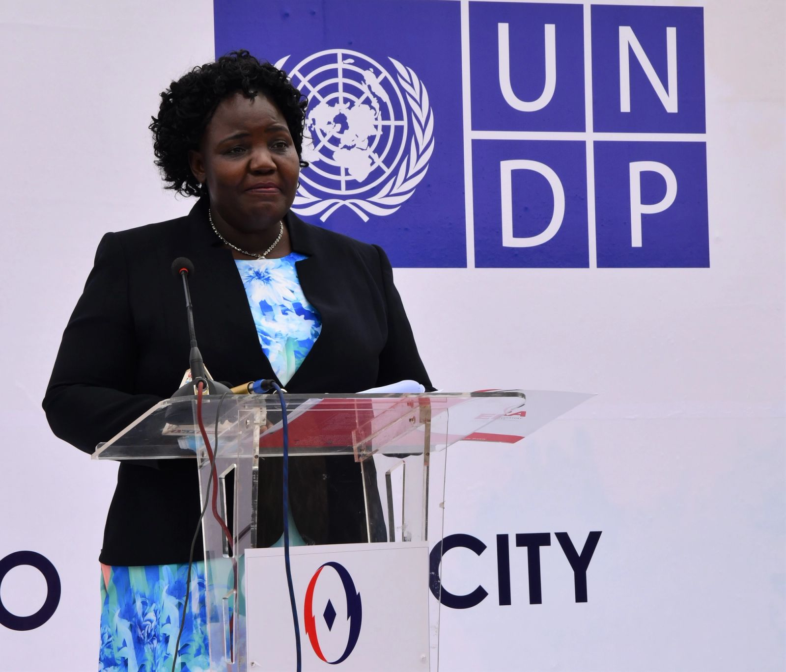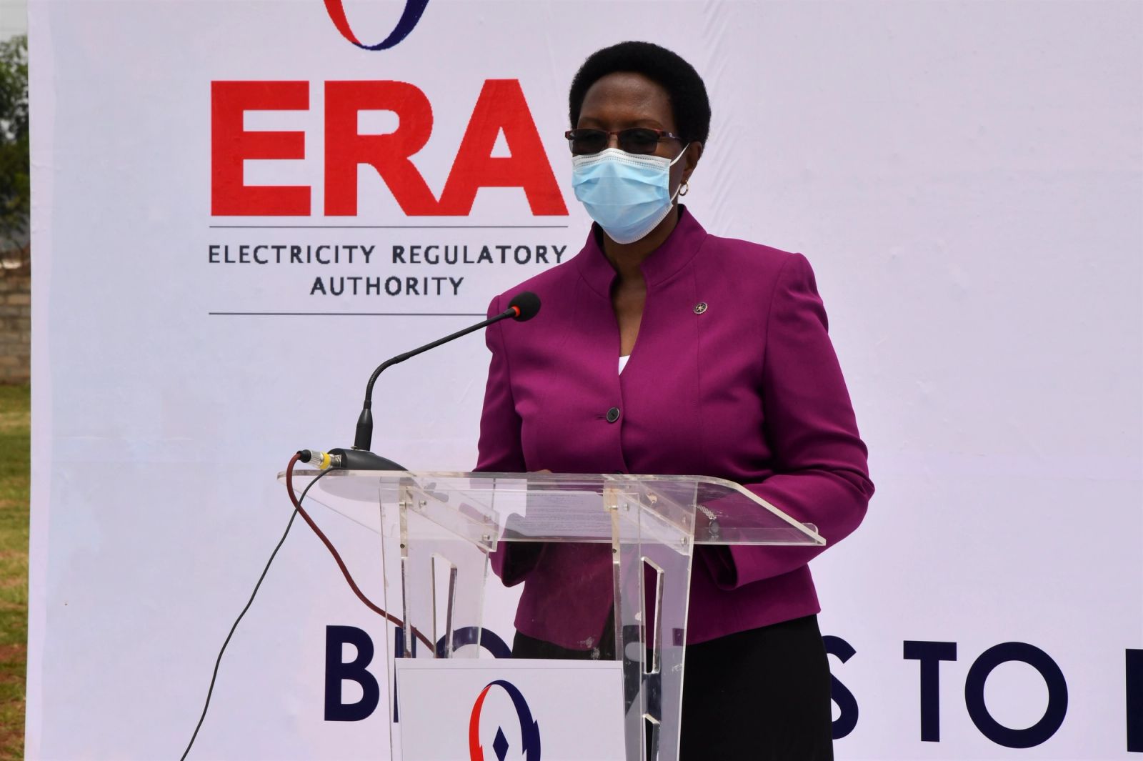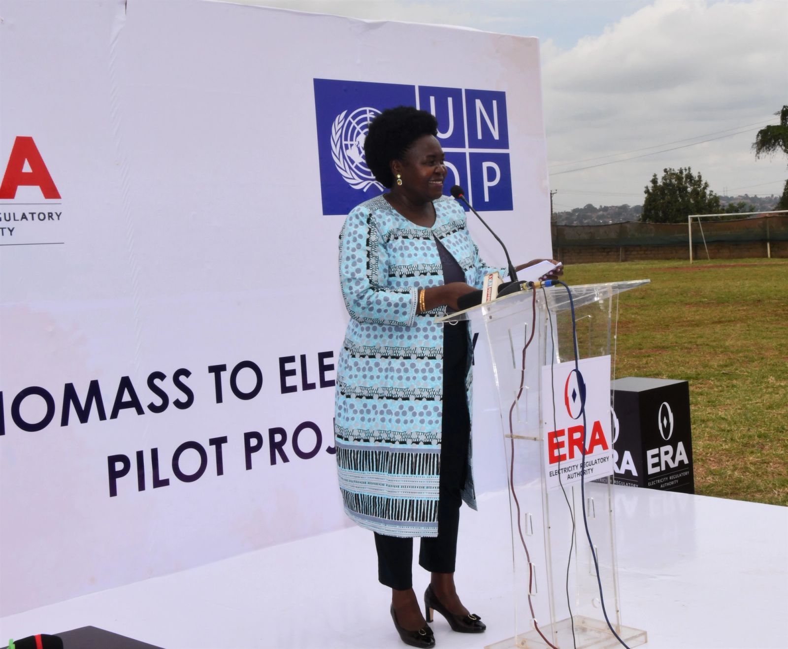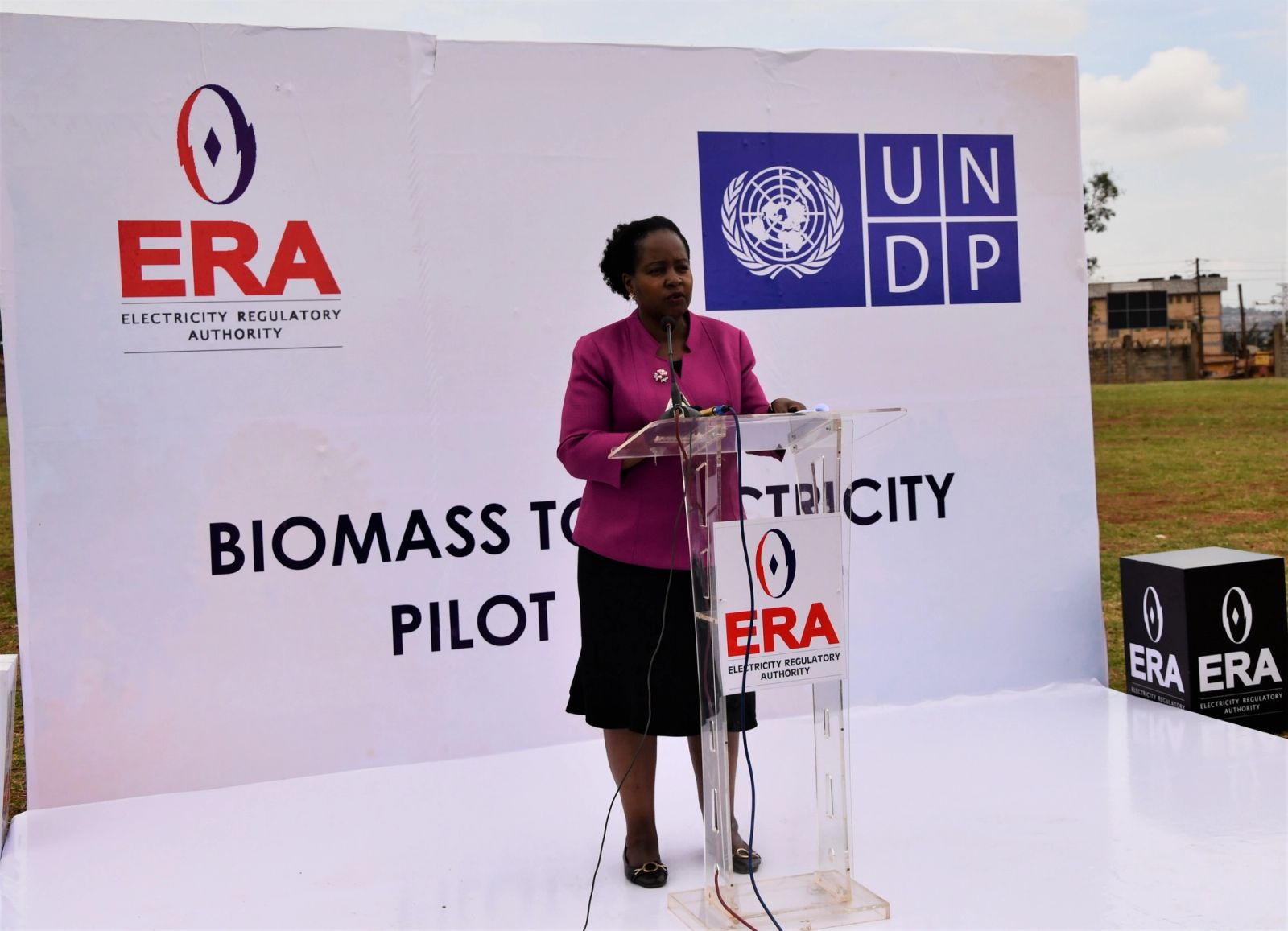 The UNDP Deputy Resident Representative, Ms. Sheila Ngatia delivers her speech during the commissioning of the UNDP/ERA Biomass-to Electricity Pilot Project